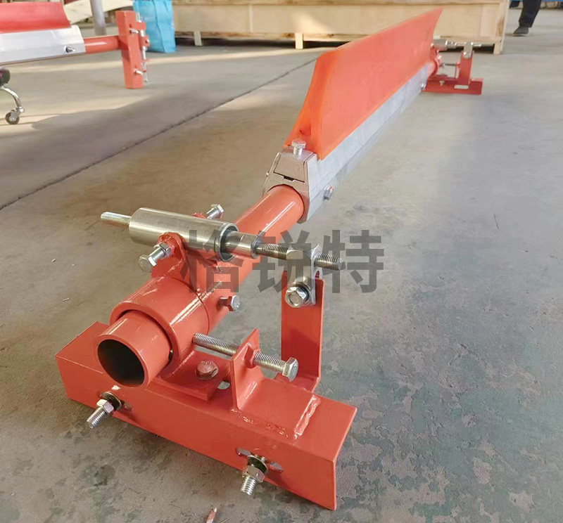 合金橡膠清掃器利用橡膠體本身的彈性性能,可自動調節清掃器刮板與輸送機膠帶之間的接觸壓力,橡膠體的緩沖作用,保證了刮板與運行的膠帶受力在一定合···
